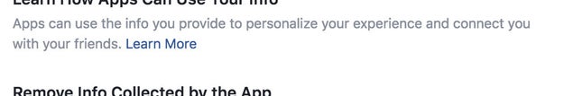 In the same row of links in tiny font next to Report App, click on App privacy policy, which will take you to the app’s website. There will be a lot of legal mumbo jumbo in here, so just search (command + F) for “Facebook” or “social networks” to go straight to the section that covers integration with social networks.